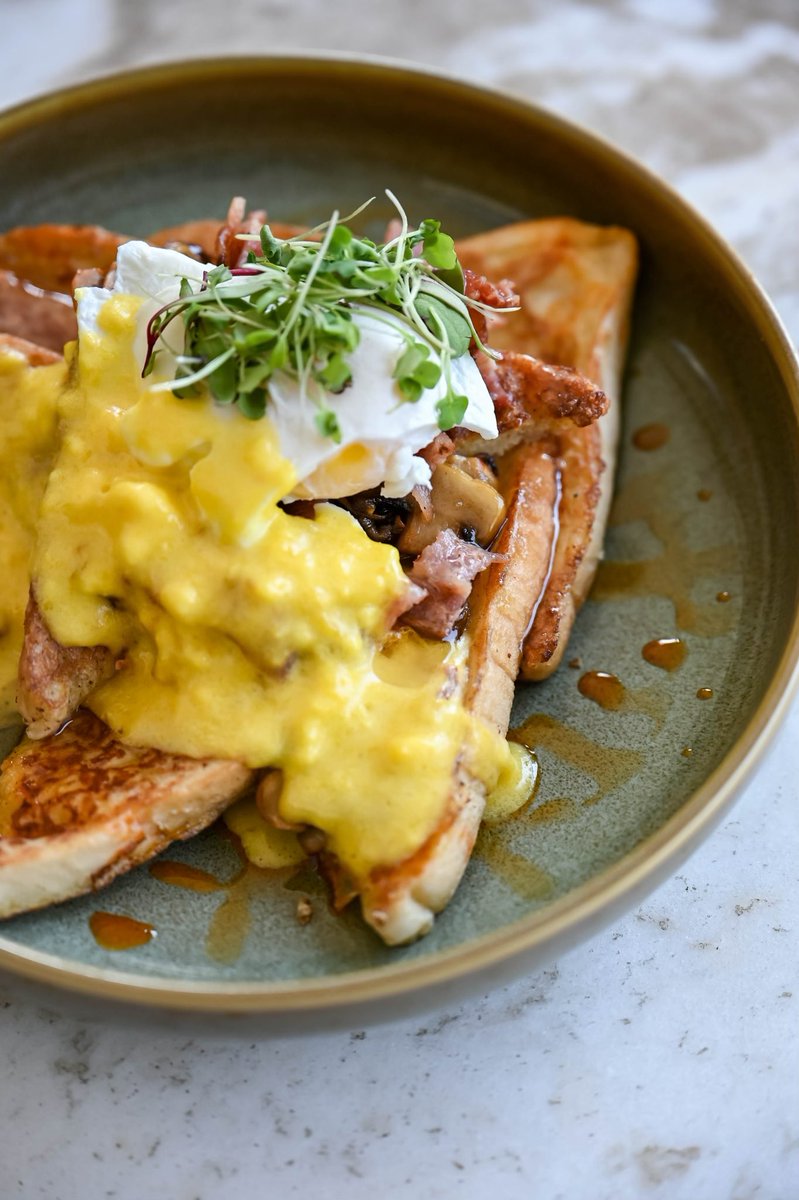 Savour an exquisite menu that marries bold flavors with refined presentation. Delight in creations like the Chicken Waffle Benedict or the indulgent Sweet & Savory Bacon French Toast, each dish a celebration of fresh, locally sourced ingredients.